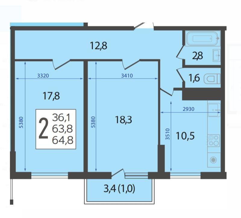 Продается 2-х комн. новостройка, 64.8 кв.м., 10/24 эт
