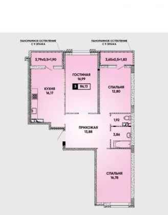 Продается 3-х комн. новостройка, 86.1 кв.м., 12/22 эт