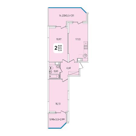 Продается 2-х комн. новостройка, 69.2 кв.м., 7/19 эт