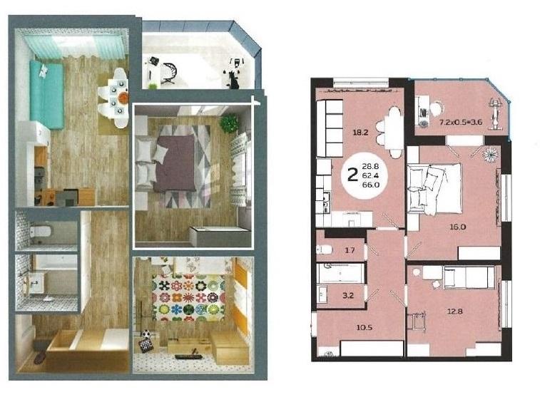 Продается 2-х комн. новостройка, 66 кв.м., 5/24 эт
