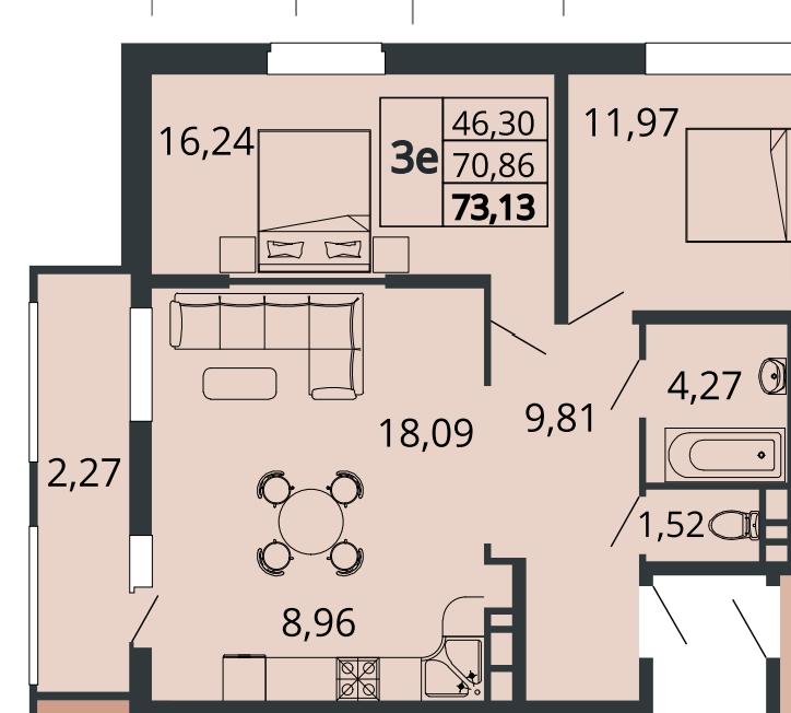 Продается 3-х комн. новостройка, 73.13 кв.м., 7/9 эт