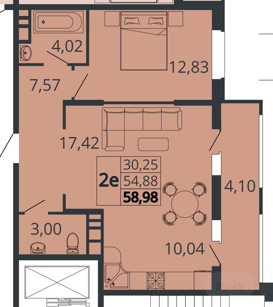 Продается 2-х комн. новостройка, 58.98 кв.м., 7/9 эт