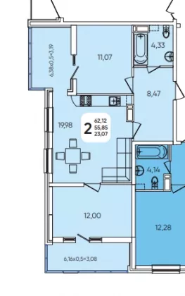 Продается 2-х комн. новостройка, 62 кв.м., 8/19 эт