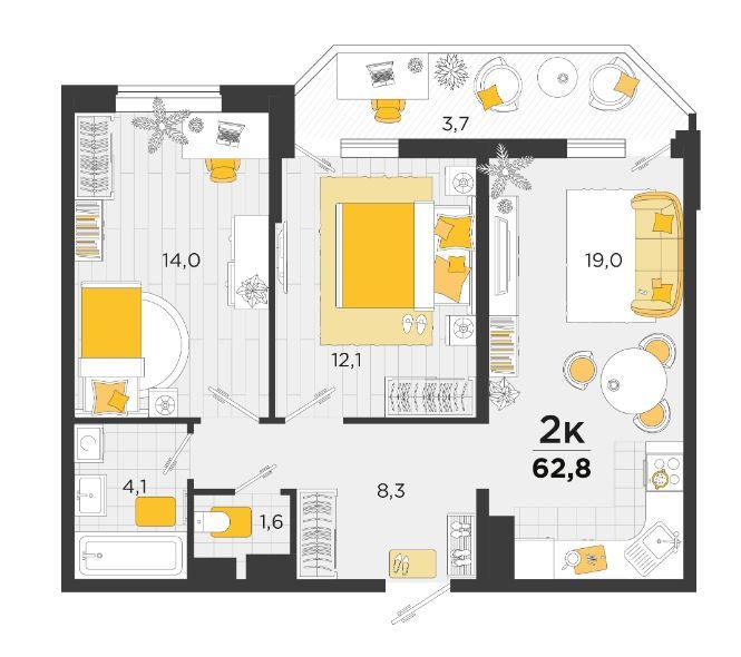 Продается 2-х комн. новостройка, 62.8 кв.м., 12/23 эт