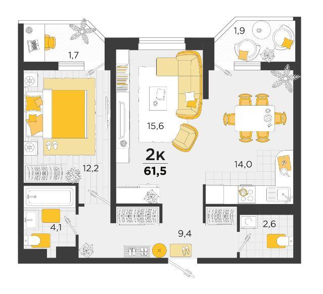Продается 2-х комн. новостройка, 61.5 кв.м., 11/23 эт