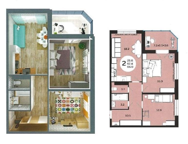 Продается 2-х комн. новостройка, 66 кв.м., 19/24 эт