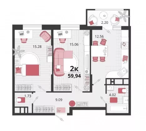 В избранное Двухкомнатная квартира