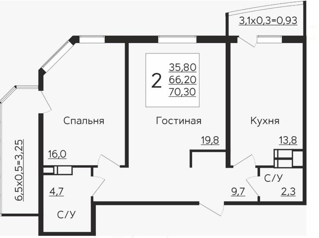 Продается 2-х комн. новостройка, 70.3 кв.м., 9/12 эт
