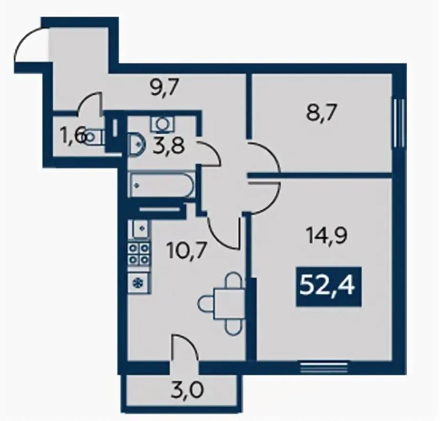 Продается 2-х комн. новостройка, 52.4 кв.м., 19/24 эт