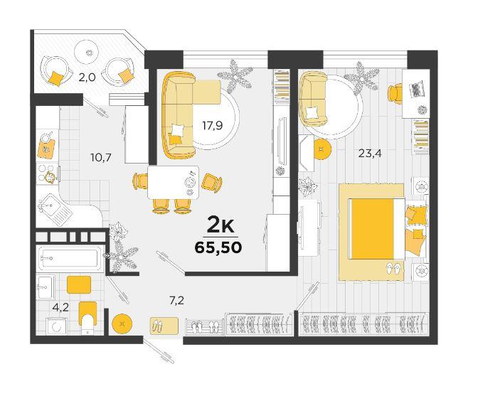 Продается 2-х комн. новостройка, 65.5 кв.м., 9/23 эт