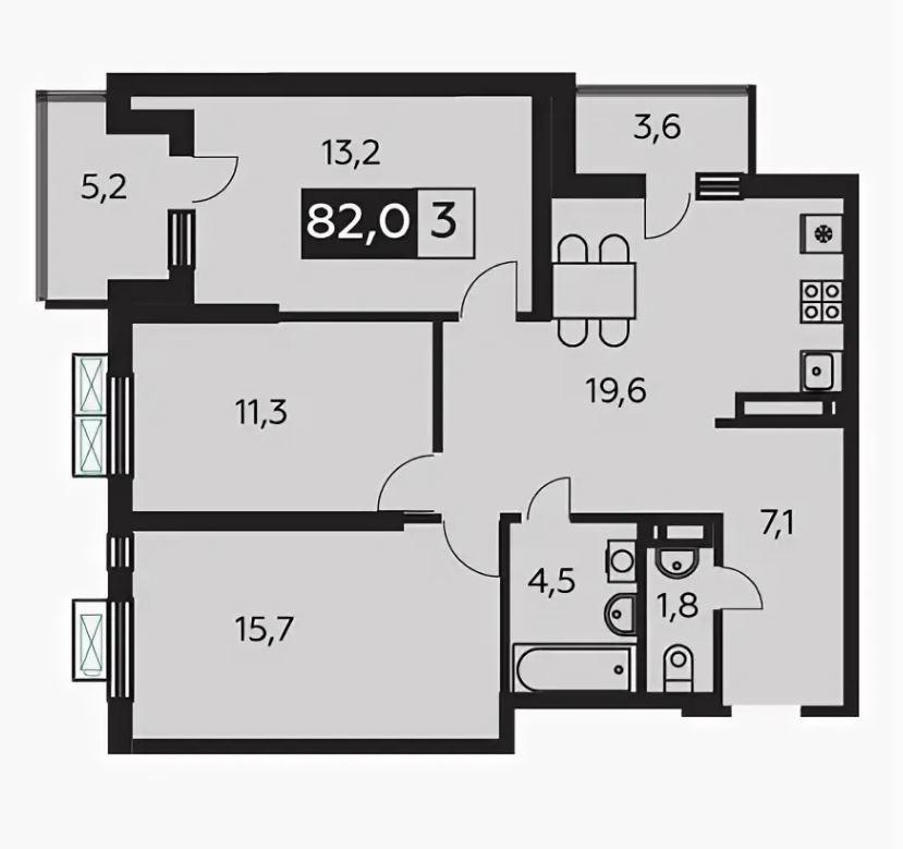 Продается 3-х комн. новостройка, 82 кв.м., 21/24 эт