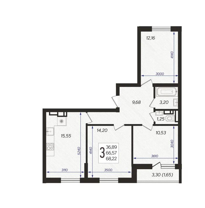 Продается 3-х комн. новостройка, 68.2 кв.м., 9/16 эт