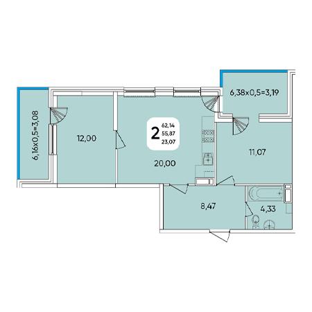 Продается 2-х комн. новостройка, 62.14 кв.м., 6/24 эт