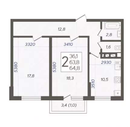 Продается 2-х комн. новостройка, 64.8 кв.м., 21/24 эт