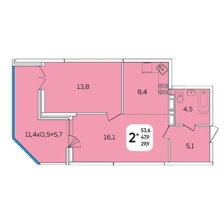 Продается 2-х комн. новостройка, 54.8 кв.м., 8/24 эт