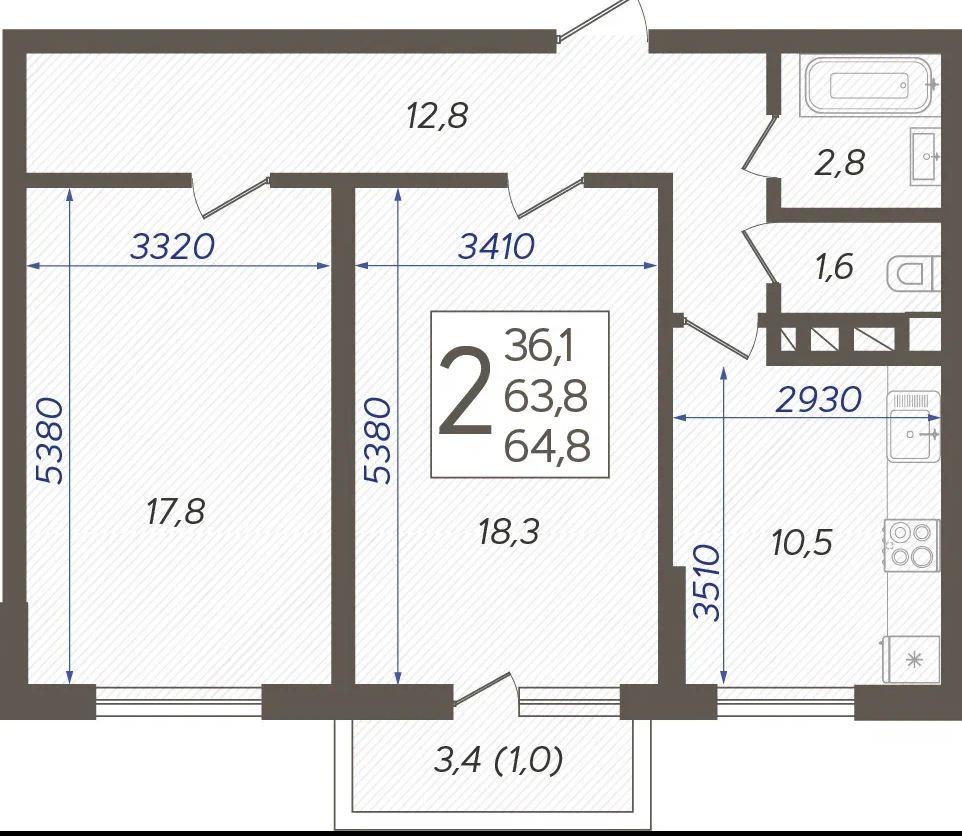 Продается 2-х комн. новостройка, 64.8 кв.м., 6/24 эт