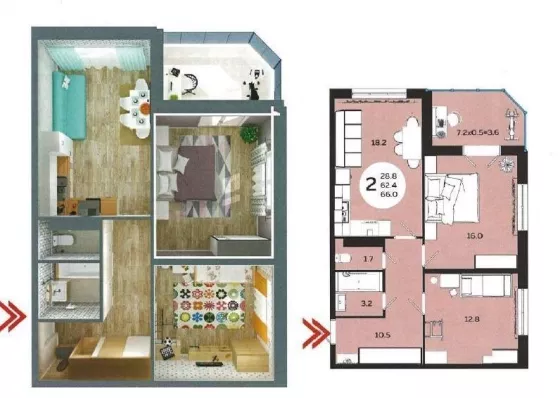 Продается 2-х комн. новостройка, 66 кв.м., 10/24 эт