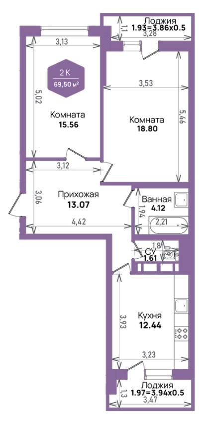 Двухкомнатная квартира на две стороны, две лоджия, большая прихожая с местами под шкафы. Ипотека семейная 6%.