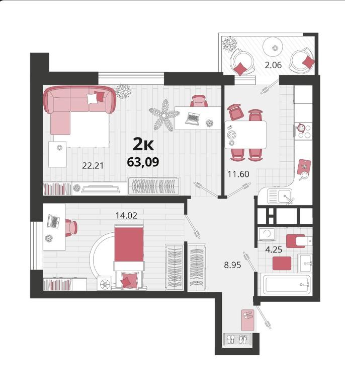 Продается 2-х комн. новостройка, 64.37 кв.м., 11/24 эт