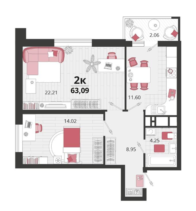 | Площадь, кв.м. | 63.09 |