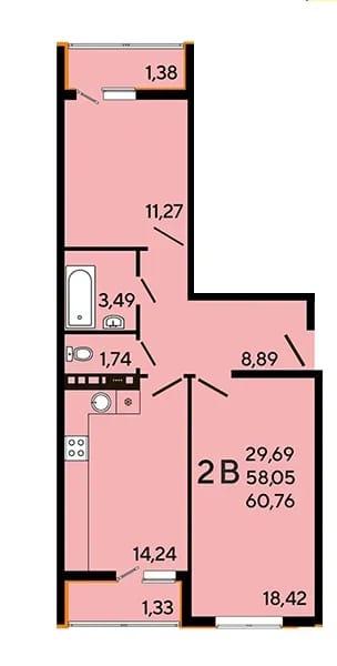 Продается 2-х комн. новостройка, 61 кв.м., 8/8 эт