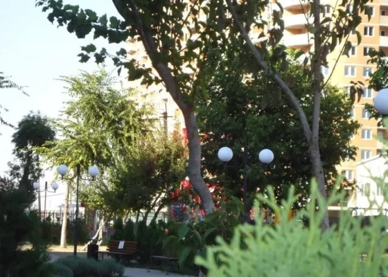 В центре района аллея с зелёными насаждениями протяжённостью более 700 метров, есть отдельная дорожка для велопрогулок и катания на роликах, удобные лавочки и большие красивые фонари. С парковкой проблем нет, можно парковаться бесплатно или купить парковку или арендовать. Здесь удобные наземные парковки на верху которых расположены целые детские городки,