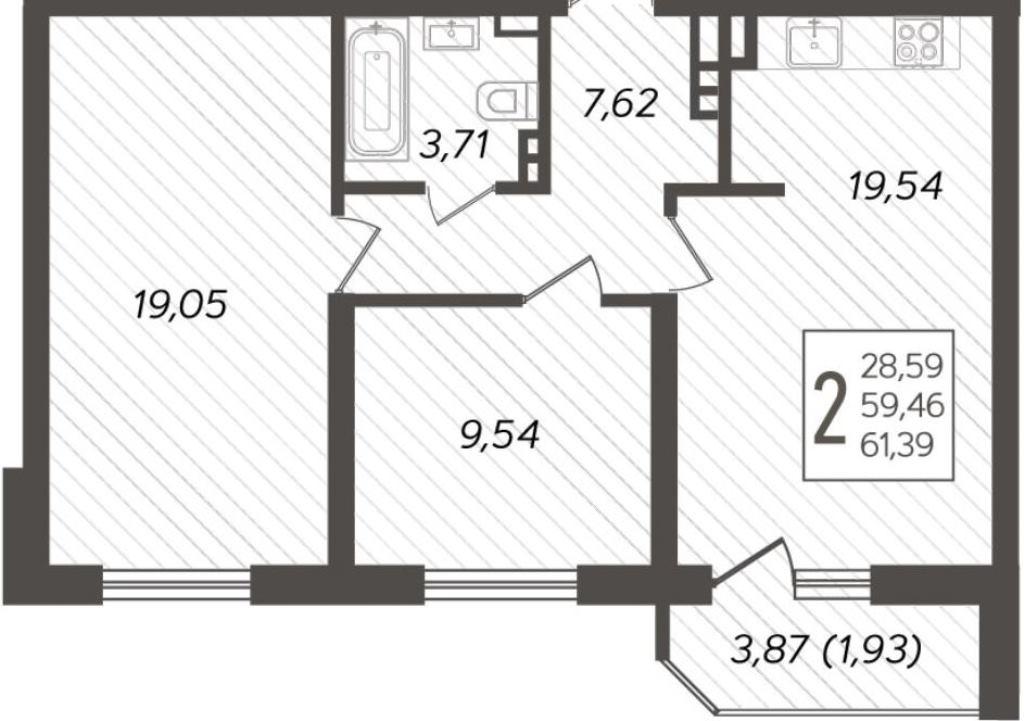 Продается 2-х комн. новостройка, 61 кв.м., 3/25 эт
