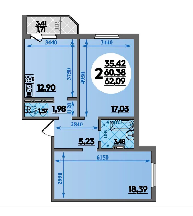 Площадь, кв.м.62.09