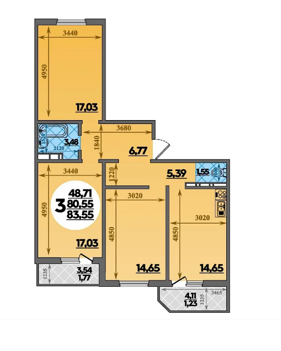 Продается 3-х комн. новостройка, 83.55 кв.м., 5/8 эт