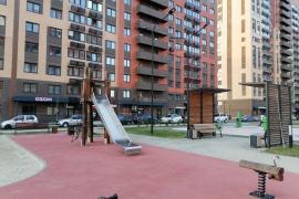 Во дворе детские и спортивные площадки для разных возрастов. Аллеи для прогулок, зелёные лужайки, места для прогулки с любимыми питомцами.