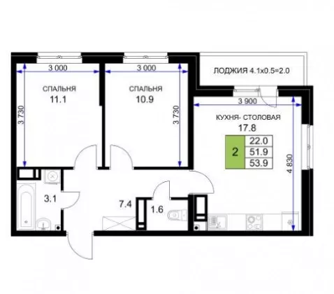 | Площадь, кв.м. | 53.9 |