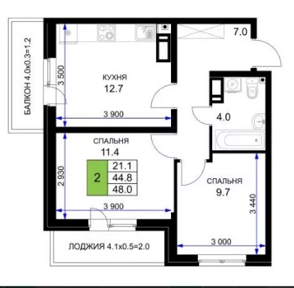 | Площадь, кв.м. | 48 |
