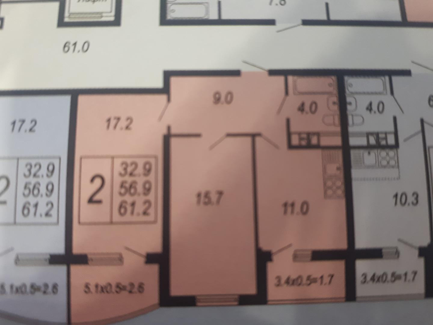 Продается 2-х комн. новостройка, 61 кв.м., 6/19 эт