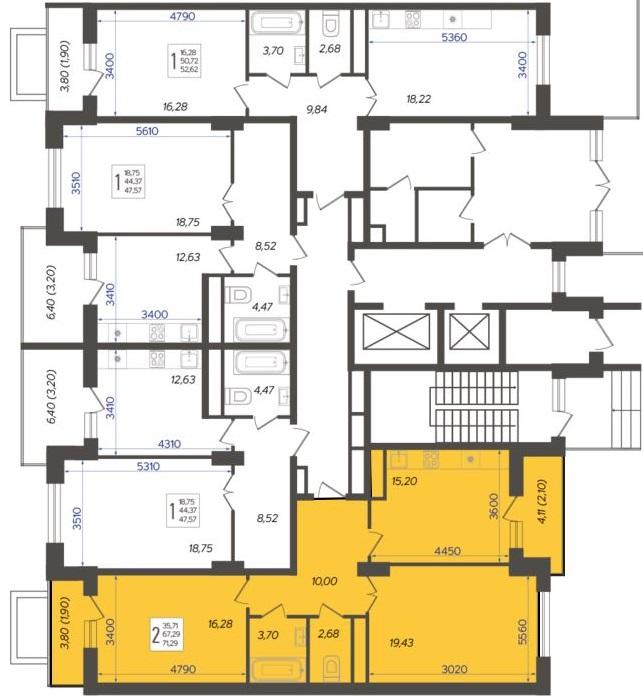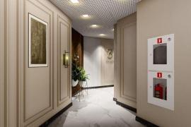 На первых двух этажах – коммерческие помещения. Хочу обратить внимание, что на площадке всего 4 квартиры. Бесшумные скоростные лифты немецкой фирмы .