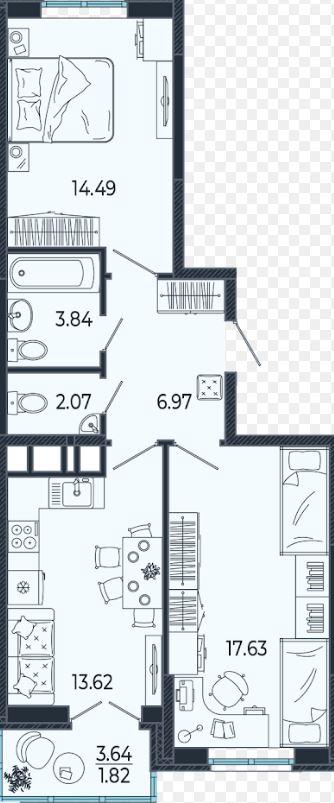 Продается 2-х комн. новостройка, 60.4 кв.м., 7/21 эт