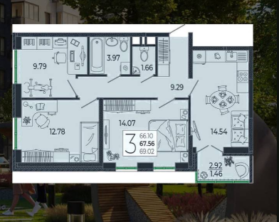 Продается 3-х комн. новостройка, 67.56 кв.м., 11/21 эт
