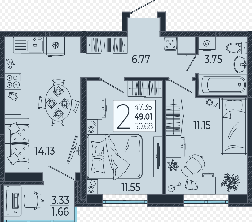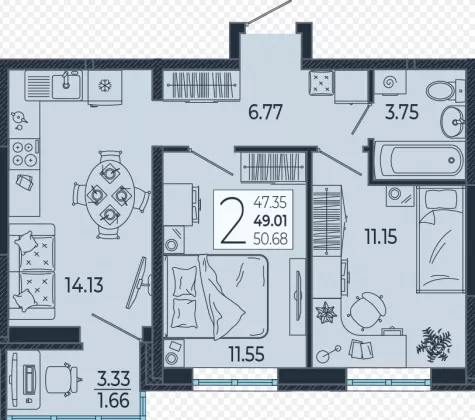 Продается 2-х комн. новостройка, 50.68 кв.м., 6/21 эт