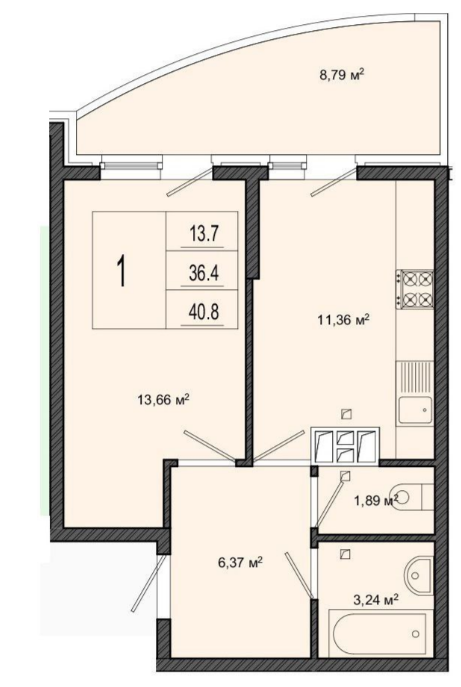 | Площадь, кв.м. | 40.8 |