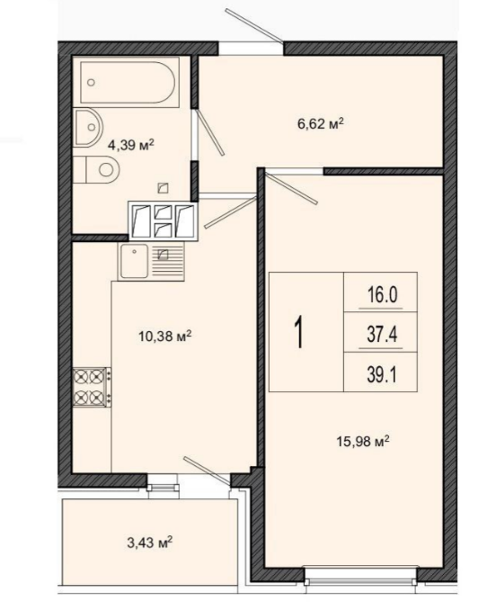 | Площадь, кв.м. | 39.1 |