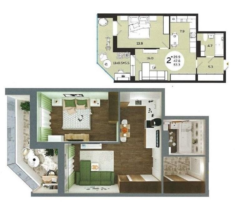 Продается 2-х комн. новостройка, 53.3 кв.м., 20/24 эт