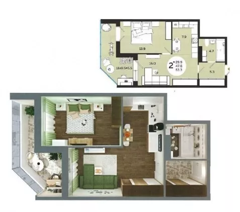 Продается 2-х комн. новостройка, 53.3 кв.м., 18/24 эт