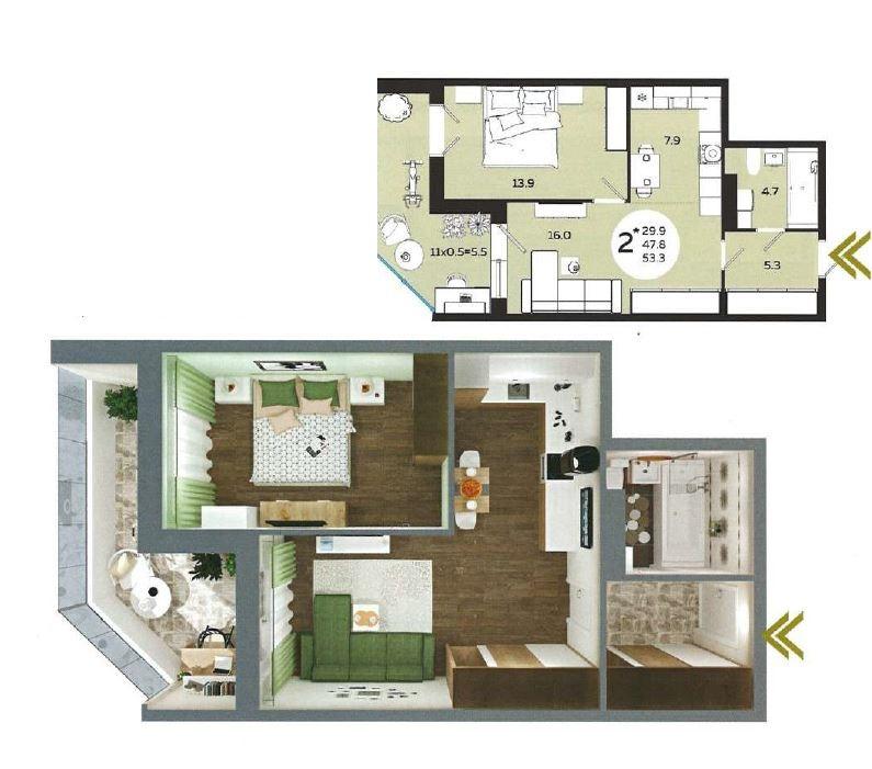 Продается 2-х комн. новостройка, 53.3 кв.м., 16/24 эт