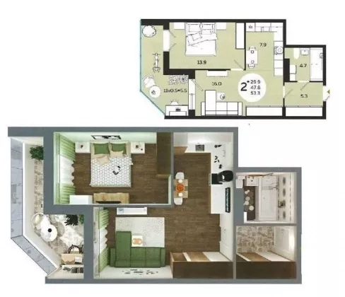 | Площадь, кв.м. | 53.3 |