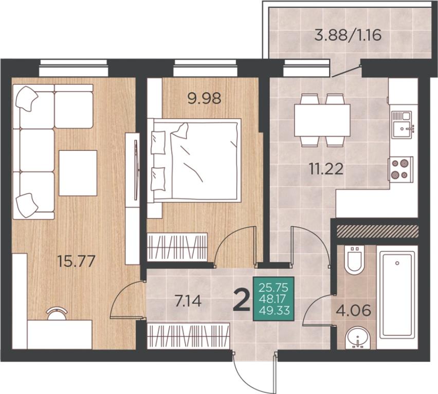 Продается 2-х комн. новостройка, 49 кв.м., 10/17 эт