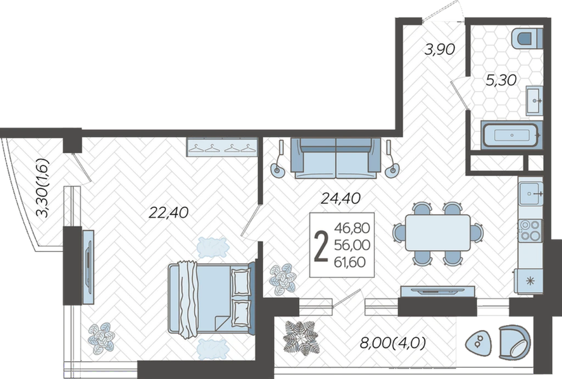 | Площадь, кв.м. | 61.6 |