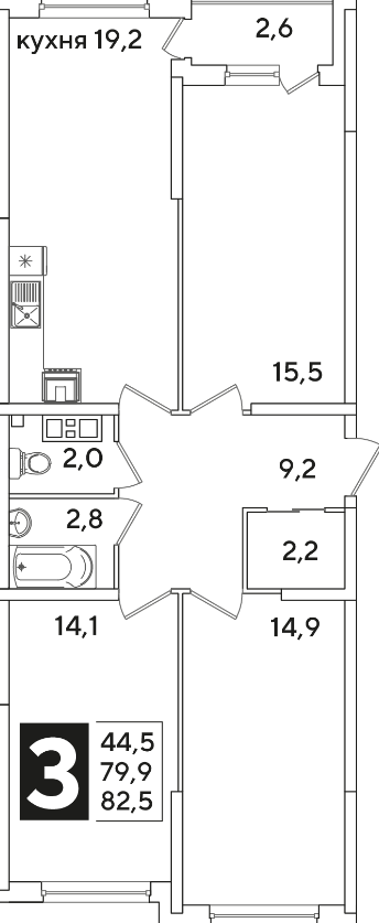 Продается 3-х комн. новостройка, 82.5 кв.м., 9/16 эт