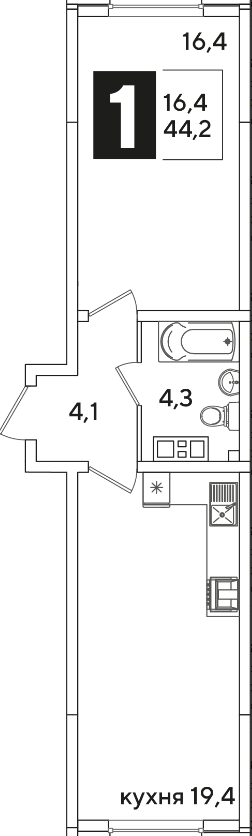 Продается однокомнатная новостройка, 44.2 кв.м., 9/16 эт