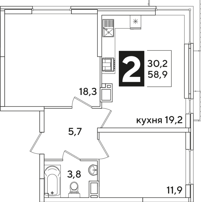 Продается 2-х комн. новостройка, 58.9 кв.м., 9/16 эт