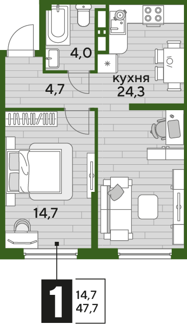 Продается однокомнатная новостройка, 47.7 кв.м., 11/16 эт
