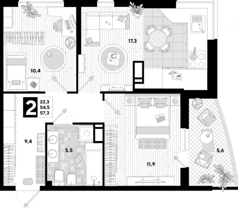 Продается 2-х комн. новостройка, 57.3 кв.м., 9/16 эт